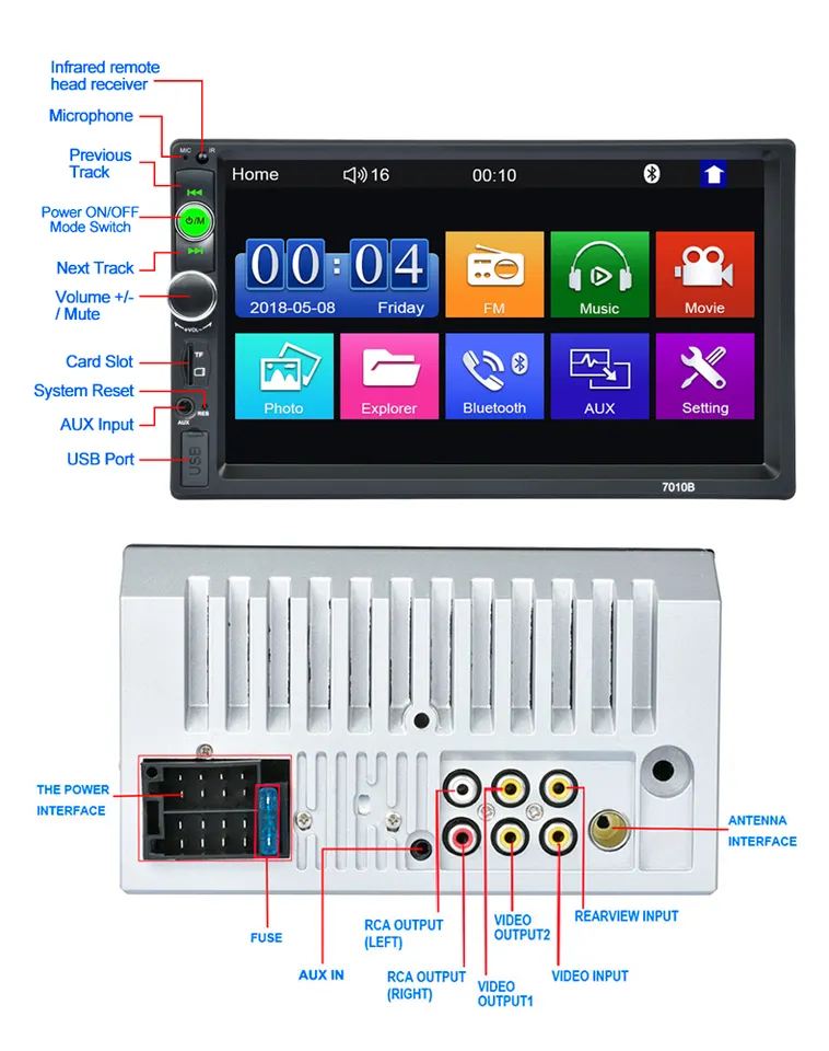 7010B Universal 7”touch screen In Car DVD radio player Mirror Link Car MP5 Player Car audio player