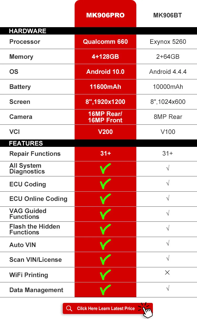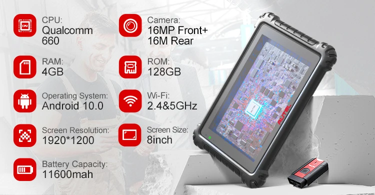 MK906pro is the latest addition to the MaxiSys product line of advanced wireless diagnostic devices. The device is based on the Android operating system featured with the best possible coverage of OE-level diagnostics and ECU coding capability. Utilizing the powerful Exynos 5260 6-core processor (1.3 GHz quad-core ARM Cortex-A7 + 1.7 GHz dual-core ARM Cortex-A15), an 8” capacitive HD touch screen, and long-distance wireless communication, the mk906bt efficiently provides comprehensive vehicle