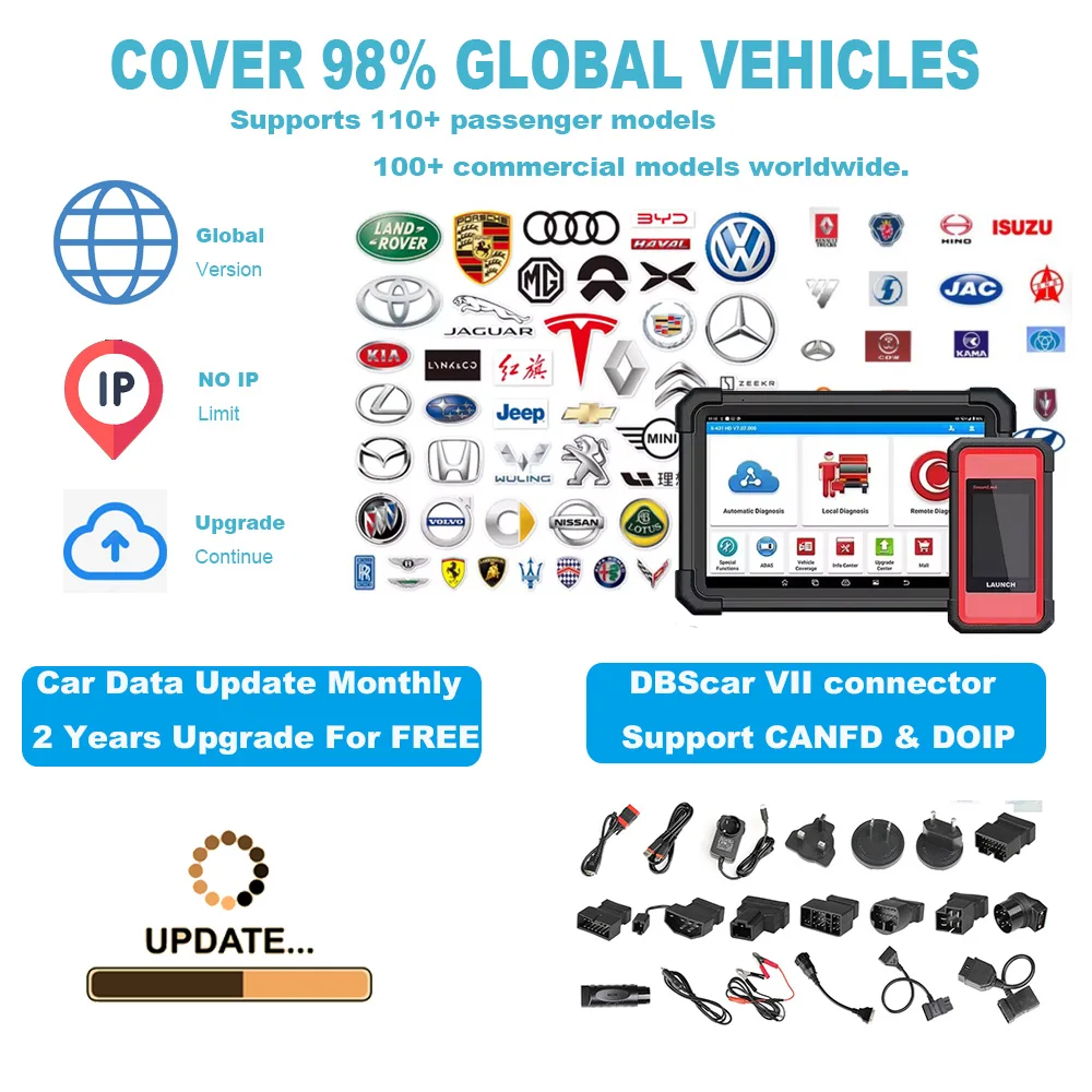 3.Extensive vehicle coverage for 110+ worldwide passenger models and 100+ Commercial models. powerful diagnostic functions, and precise test result.