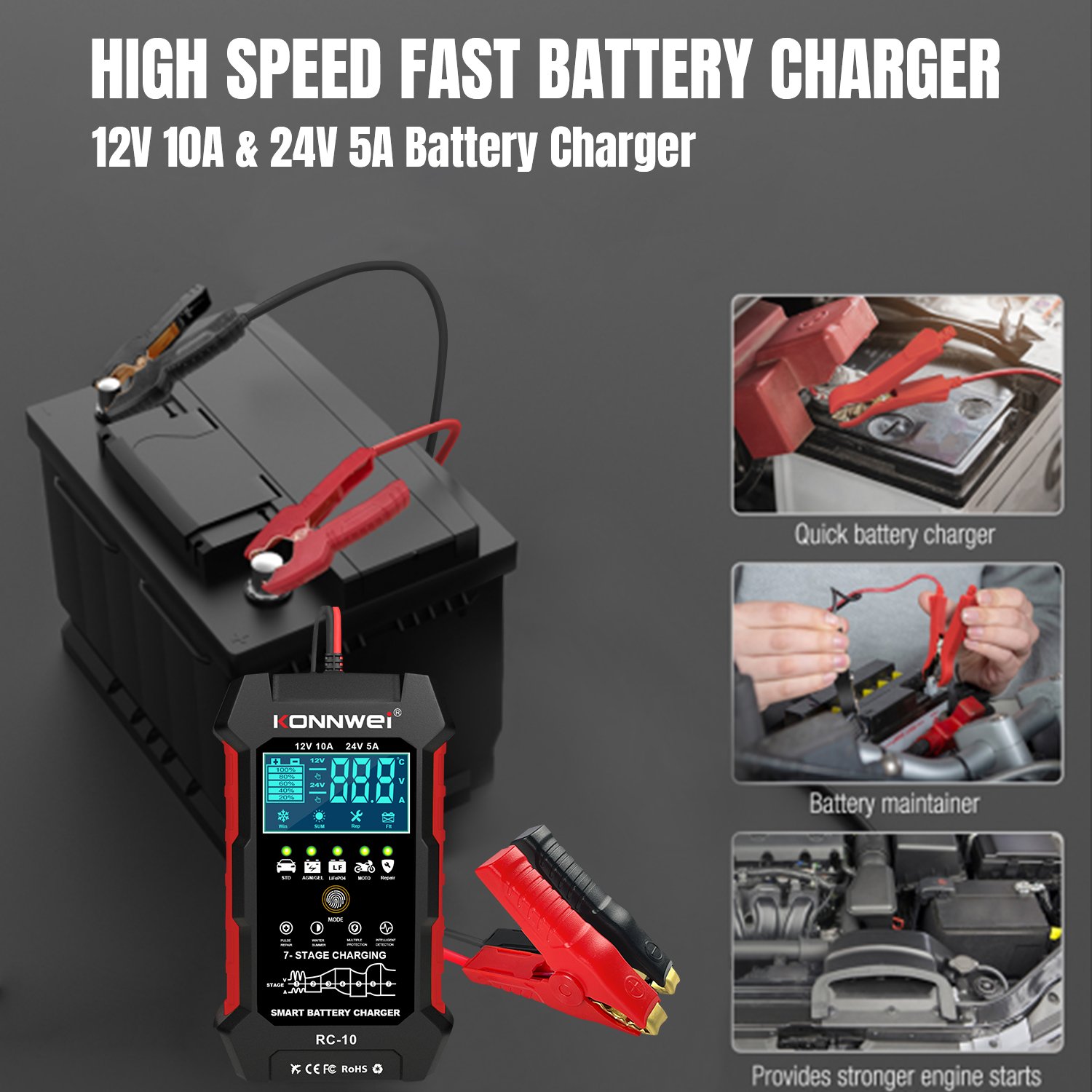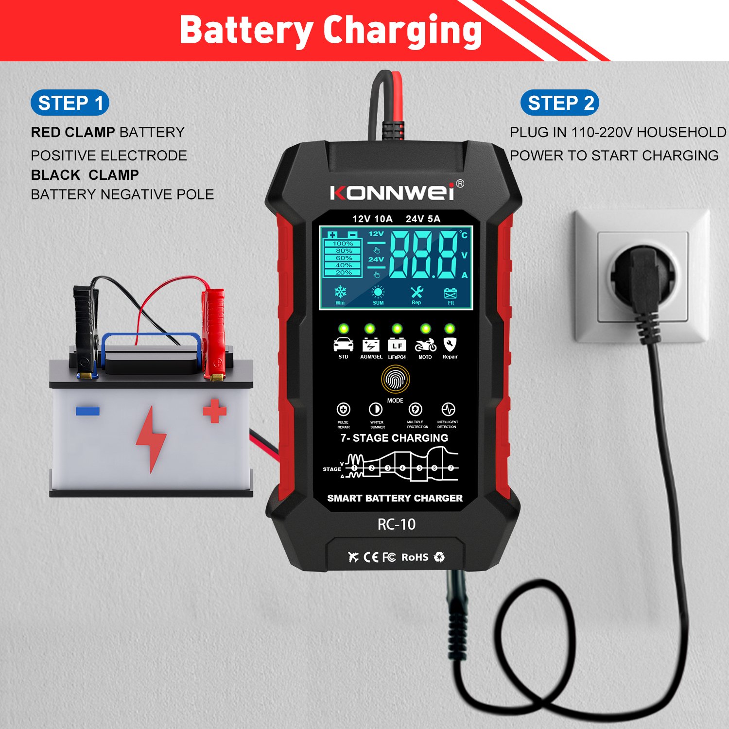 Konnwei RC10 Lithium Battery Charger, 12V/24V 5Amp 10Amp