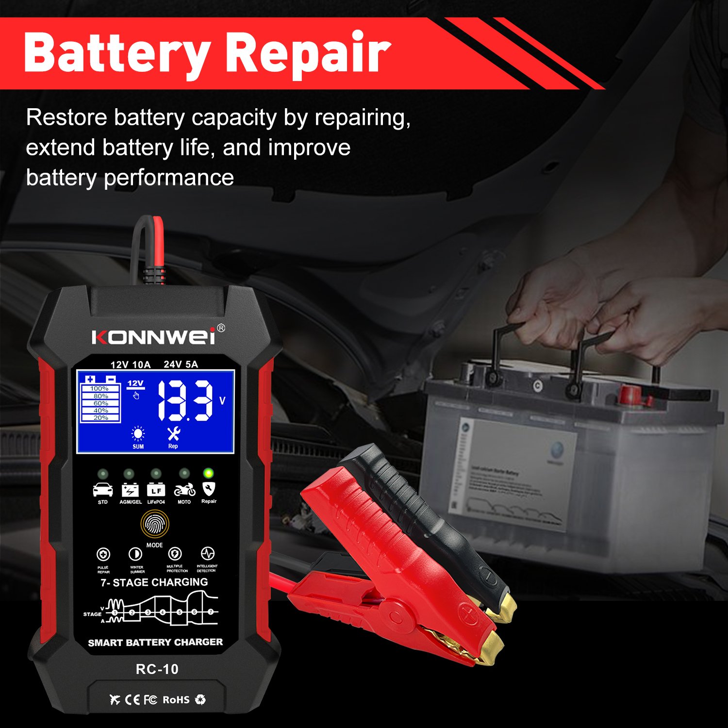 [Battery Maintainer] KOnnwei Car battery charger, also battery maintenance device, Pulse repair function can help to repair your loss battery and extend battery life. Note: It can not activate a dead battery or repair a battery which is damaged seriously; it also can not repair a battery back to 100% new.